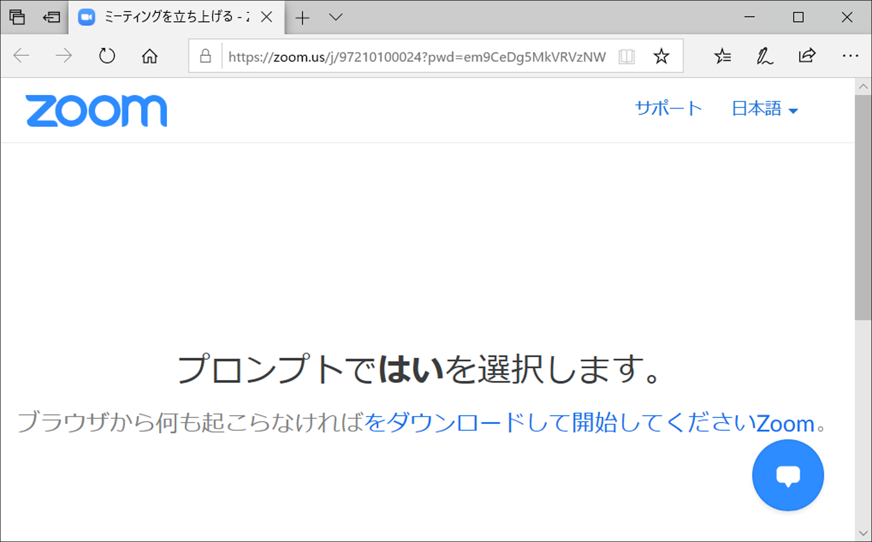 ・Zoomアプリケーションがインストールされている場合は自動で立ち上がります。(最新版アプリをお使いください)
