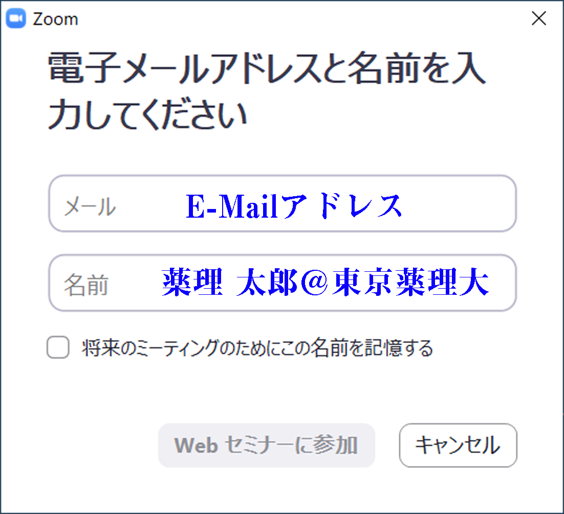 ・【重要】名前欄には下記の様に入力ください。(薬理学エデュケーター登録に使います)